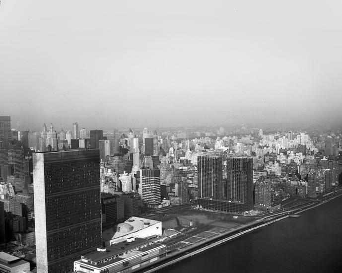 890-870 United Nations Plaza. United Nations Plaza Apartments. Aerial view from southeast