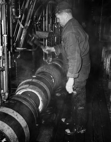 [Man operating unidentified machine.]