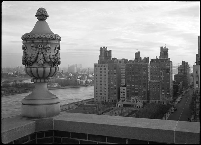 25 East End Avenue. View from window of Mrs. Knapp's twelfth floor apartment showing East River, Roosevelt Island