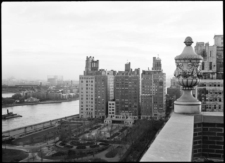 25 East End Avenue. View from window of Mrs. Knapp's twelfth floor apartment showing East River, Roosevelt Island