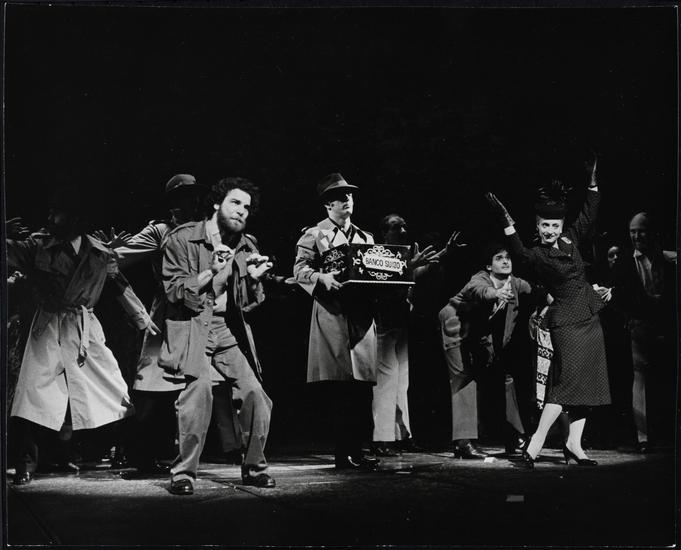 ["And the Money Kept Rolling In (and Out)" number in "Evita".]