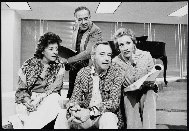 [Catherine Hicks, Robert Picardo and Jack Lemmon in rehearsal for "Tribute".]