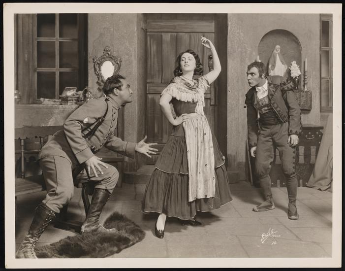 [Curtis Cooksey as A Soldier, Mary Nash as A Woman and José Ruben as A Man in "Thy Name is Woman".]
