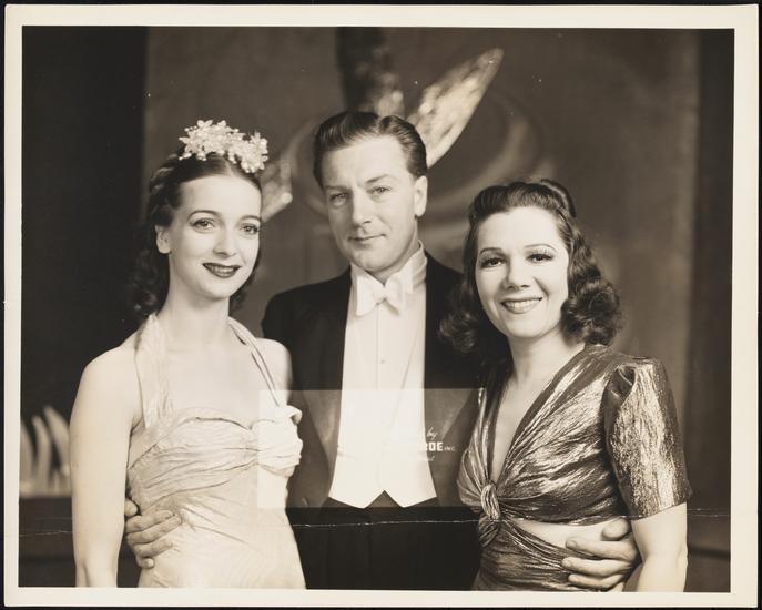 [Vivienne Segal as Countess Peggy Palarffi, Dennis King as Count Willy Palarffi and Bobbe Arnst as Anna Murphy in the tour of "I Married an Angel".]