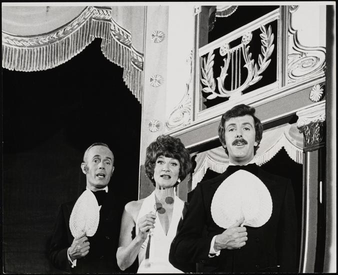 [Jamie Ross, Barbara Cason and Roderick Cook in "Oh Coward!".]