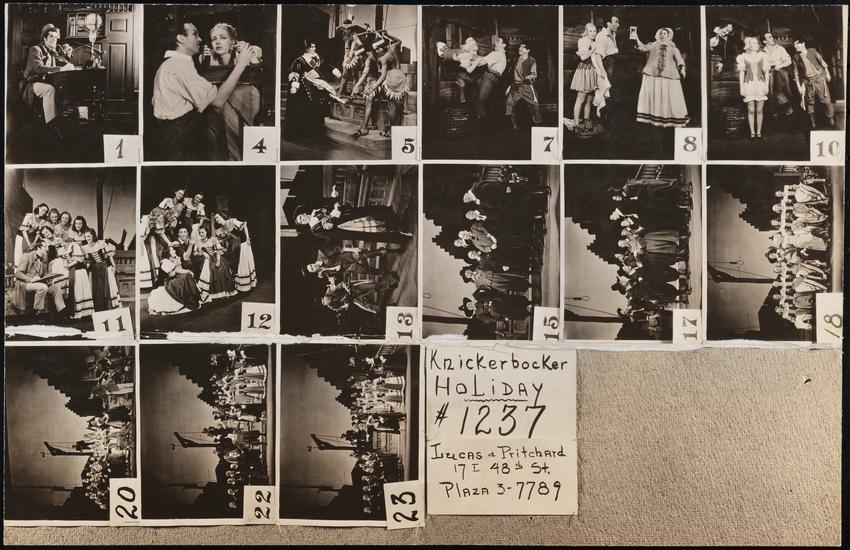 [Ray Middleton as Washington Irving with Citizens of New Amsterdam in "Knickerbocker Holiday".]