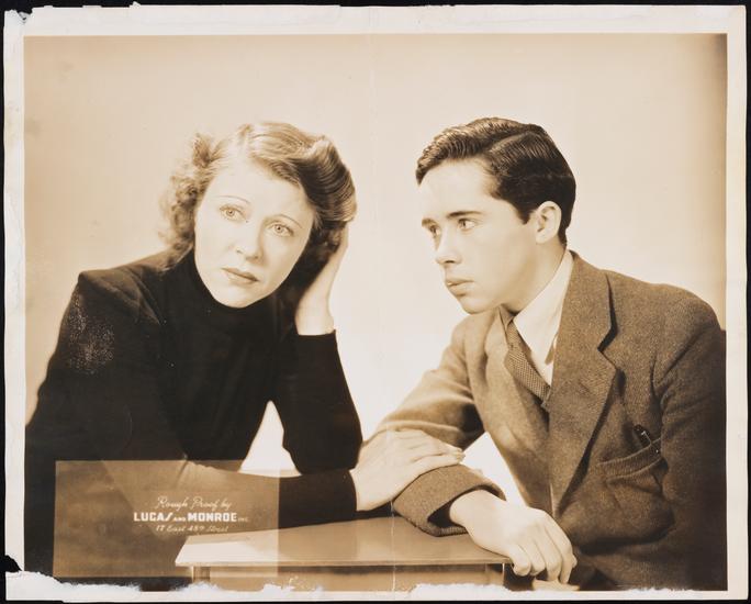 [Ruth Chatterton as Madge Monckton and Eldon Gorst as David in "Leave Her To Heaven".]
