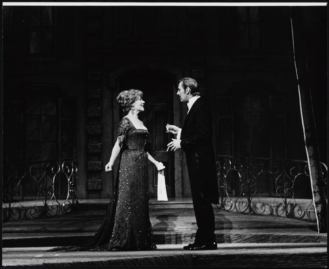 [Len Cariou as Fredrik Egerman and Glynis Johns as Desiree Armfeldt in "A Little Night Music".]