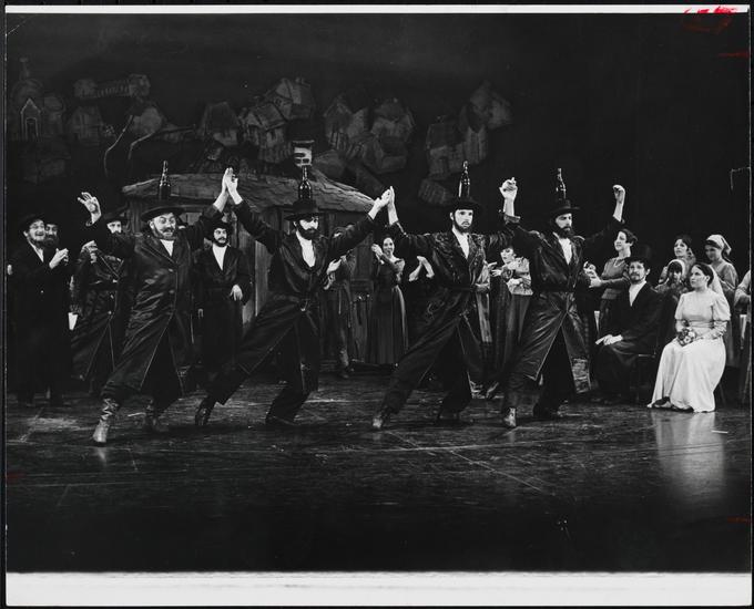 [Possibly David Garfield as Motel and unidentified actress as Tzeitel in "Fiddler on the Roof".]