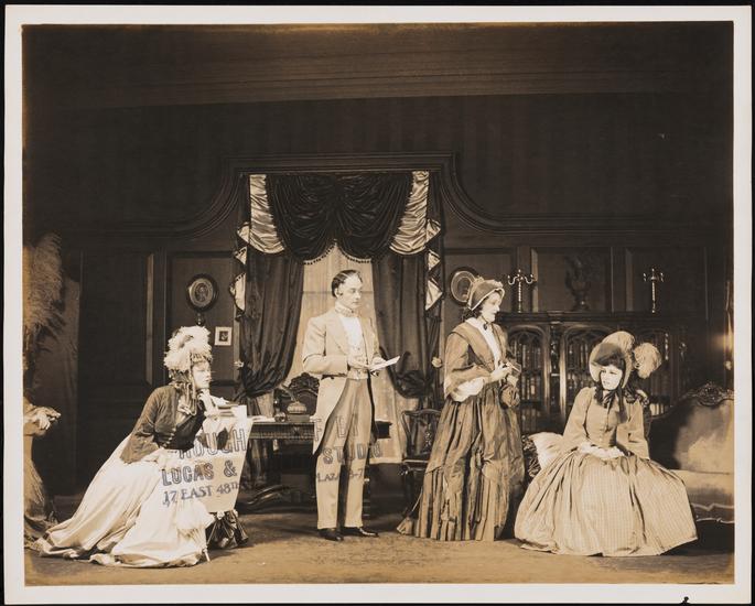 [Possibly Elwyne Harvey as Georgina Hogarth, Robert Keith as Charles Dickens and Zolya Talma as Mrs. Charles Dickens in "Romantic Mr. Dickens".]