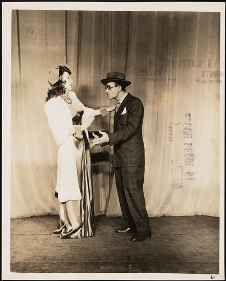 [Jimmy Savo and Margaret Hart in "Wine, Women and Song".]