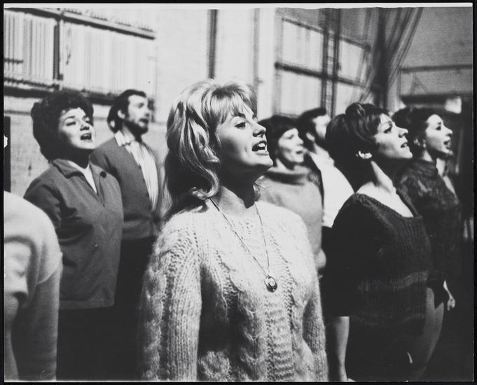 [Anna Maria Alberghetti rehearsing with composer and lyricist Bob Merrill for "Carnival!".]