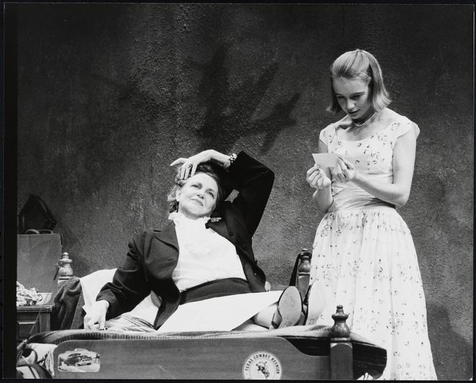 [Geraldine Page as Lorraine and Karen Young as Sally in "A Lie of the Mind".]