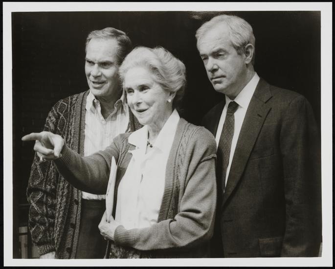 [Julie Boyd as Kate Sullivan and Jane Welch as Bea Sullivan in an out-of-town production of "Other People's Money".]