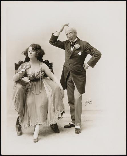 [Margot Kelly as Phrynette and Emil de Varney as The Baron in "Pierrot the Prodigal".]