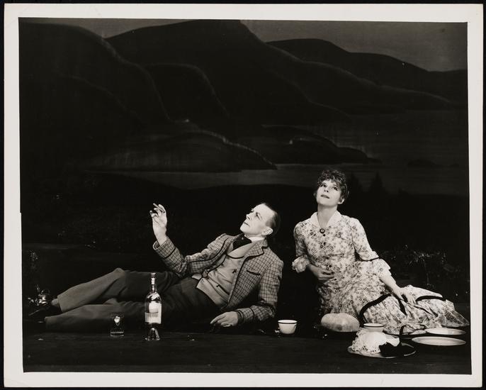[Ernest Thesiger as Jacques and Katharine Hepburn as Rosalind in "As You Like It".]