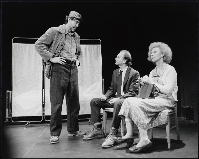 [Deirdre O'Connell as Beth, Louise Latham as Meg and John Griesemer as Mike in "A Lie of the Mind".]
