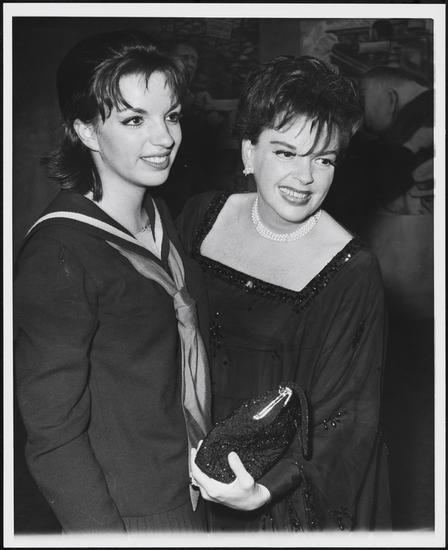 [Judy Garland and Liza Minnelli with others at a celebration for "Flora, the Red Menace".]