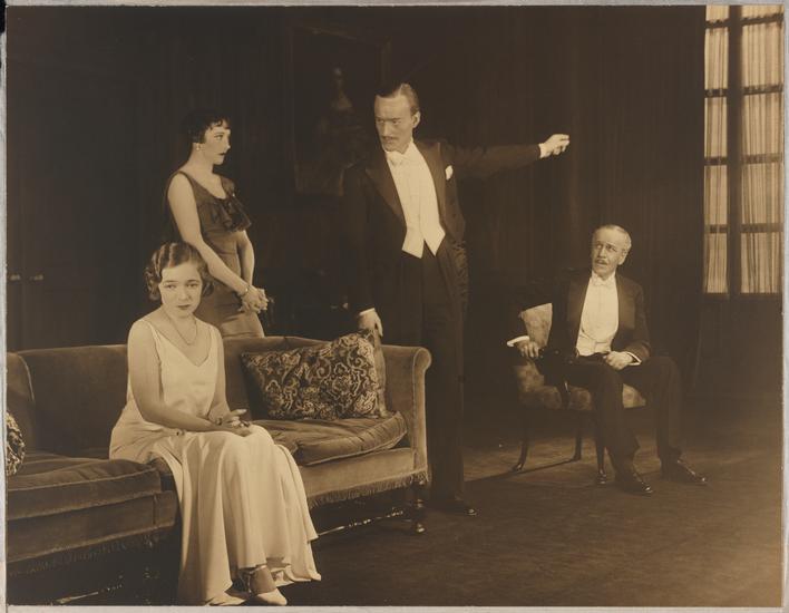 [John Williams as Richard Chalfont, Helen Hayes as Peggy Chalfont and Henry Stephenson as The Earl of Darnaway in "Petticoat Influence".]