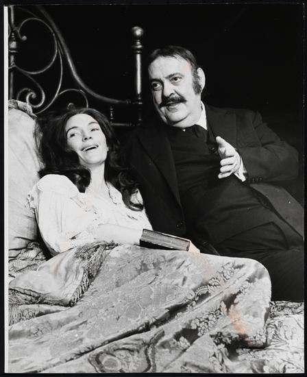 [Zero Mostel and Fionnuala Flanagan in "Ulysses in Nighttown".]