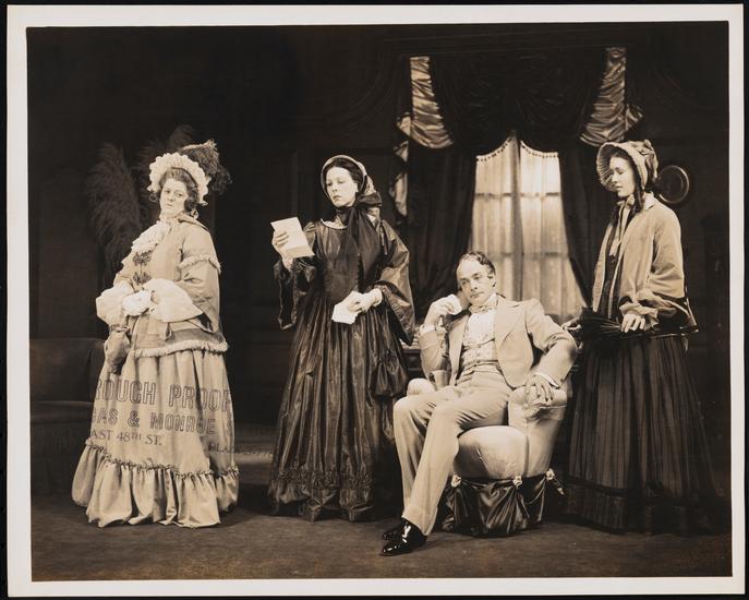 [Possibly Elwyne Harvey as Georgina Hogarth, Robert Keith as Charles Dickens and Zolya Talma as Mrs. Charles Dickens in "Romantic Mr. Dickens".]