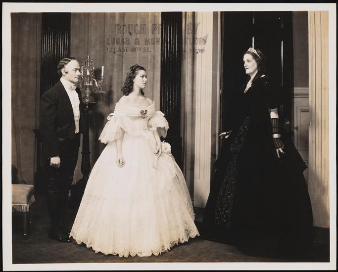 [Zolya Talma as Mrs. Charles Dickens, Robert Keith as Charles Dickens and Diana Barrymore as Caroline Bronson in "Romantic Mr. Dickens".]