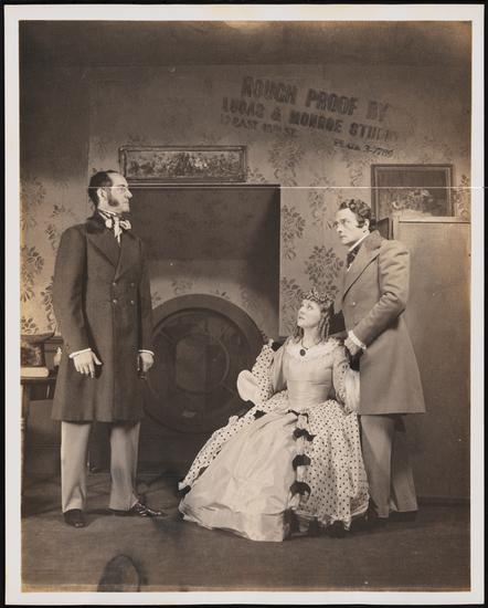 [Robert Keith as Charles Dickens and Gertrude Flynn as Dora Spenlow (later Dora Winter) in "Romantic Mr. Dickens".]
