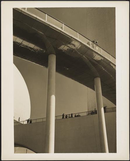 [Helicline between Trylon and Perisphere, New York World's Fair.]