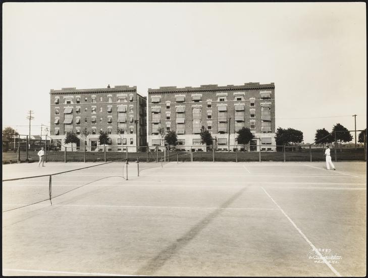[Hayes Boulevard. Tennis courts and Chateau apartments.]