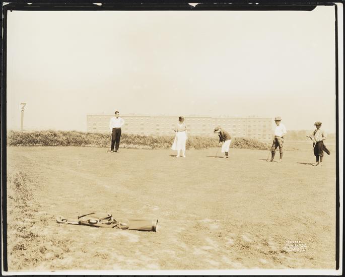[Women playing golf in Jackson Heights.]