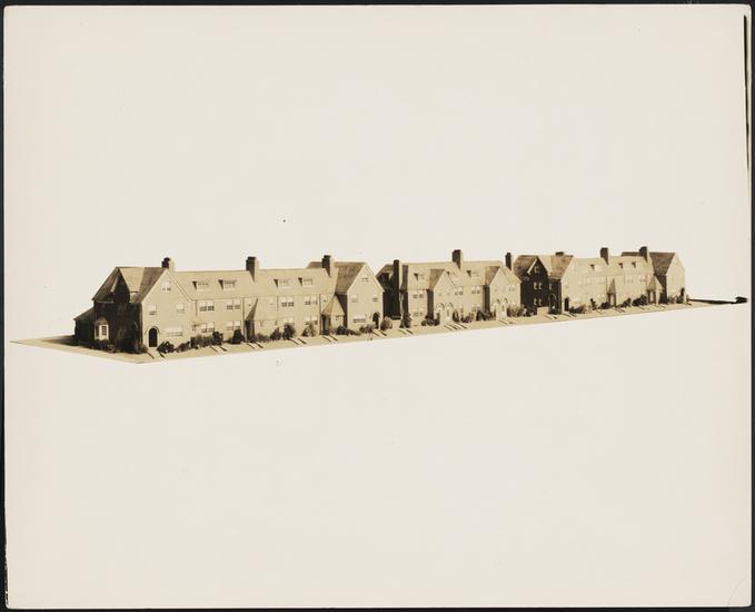 Jackson Heights. View of three garden apartments.