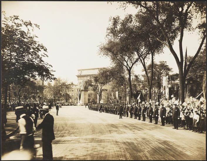 Washington Arch looking south. [Mayor's Committee to Welcome British & French War Commissions.]