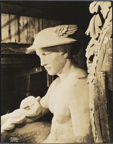46th Street and Park Avenue. Photo to show cutting stonework on clock set, New York Central Building.