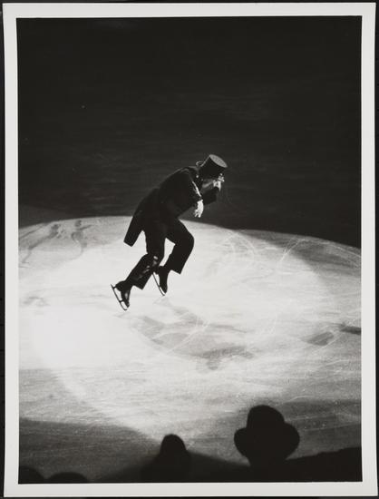 [Ice skating show, man in top hat.]