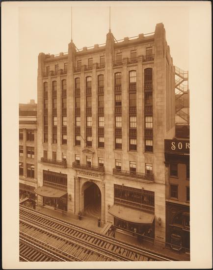 34th Street and Fifth Avenue. Altman's Department Store. Entire block from elevated vantage