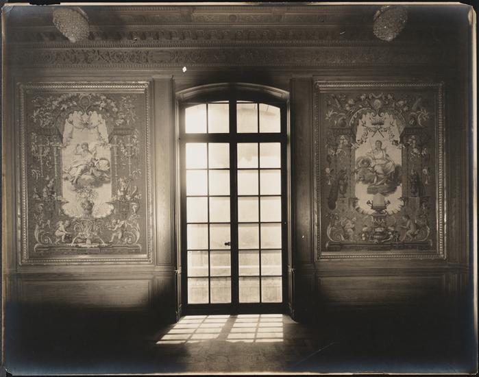 East 77th Street and Fifth Avenue. Senator William A. Clark residence. Interior, period room, detail of tapestry and frame