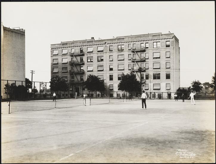 [Hayes Boulevard. Tennis courts and Chateau apartments.]