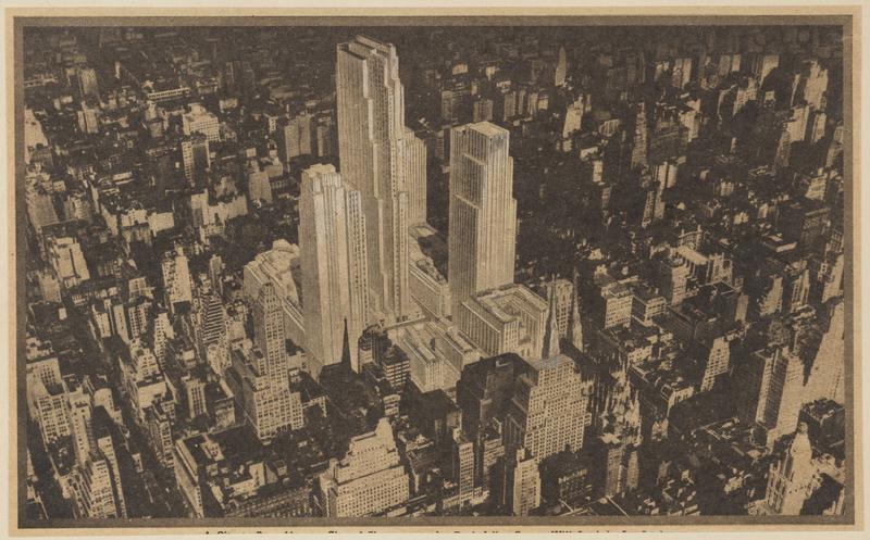 Rockefeller Center and Radio City Music Hall. Construction, steel frame. View from top of 444 Madison Avenue