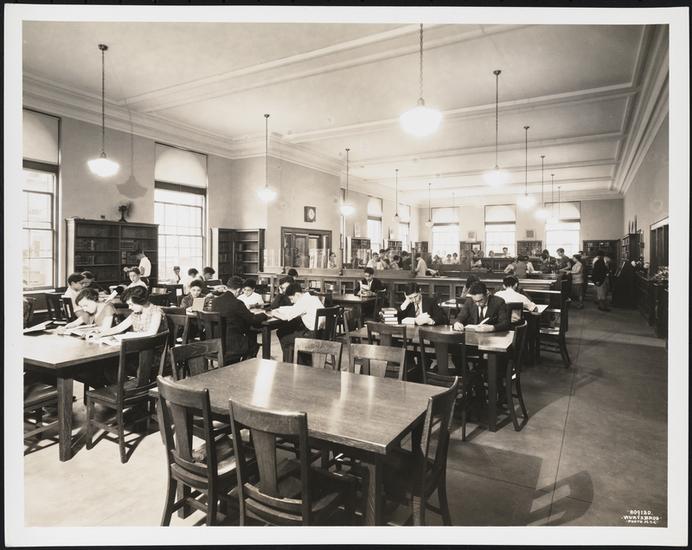 168th Street and Woodycrest Avenue. New York Public Library High Bridge Branch. Interior, reading room