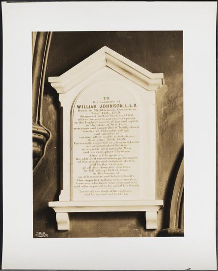 Wall Street and Broadway. Trinity Church. Interior, chapel lobby, Andrew Hamersley Memorial Tablet
