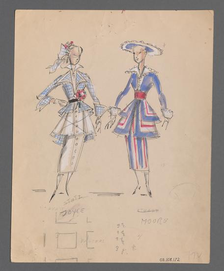 Afternoon ensemble comprising jersey blouse and cotton skirt