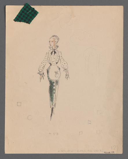 Afternoon ensemble comprising jersey blouse and cotton skirt