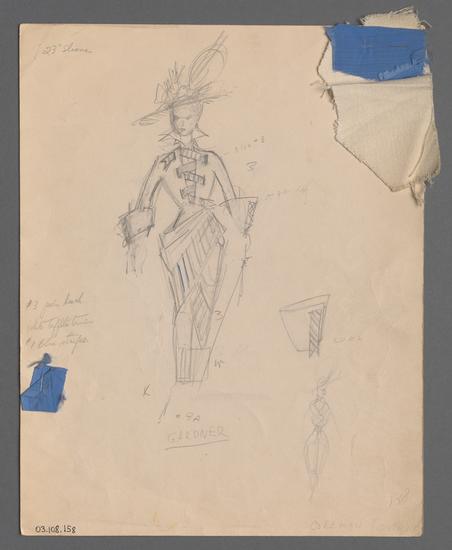 Afternoon ensemble comprising jersey blouse and cotton skirt