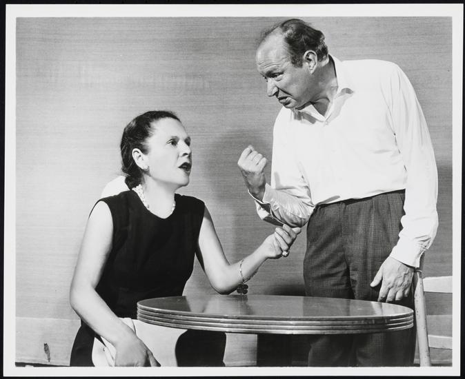 [Ruth Gordon as Zina and Sam Levene as Arnold in "Dreyfus in Rehearsal".]