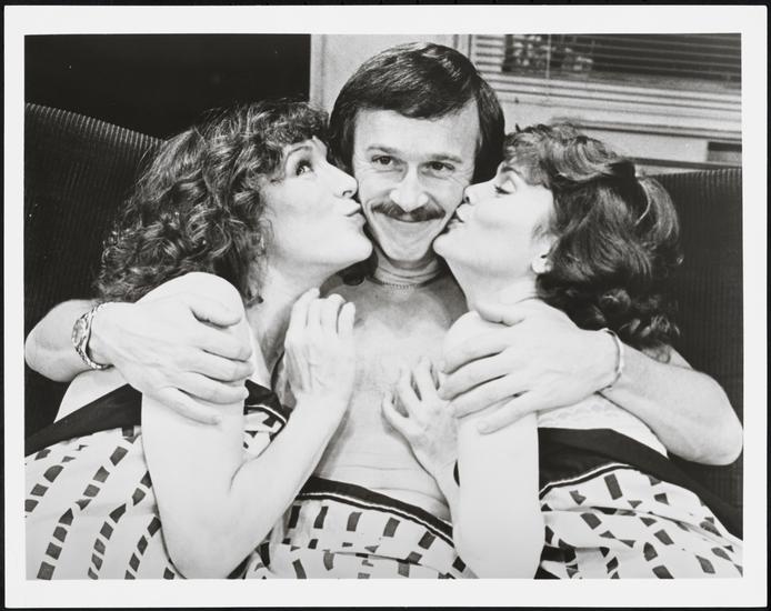 [James Naughton as Wally, Ilene Graff as Cleo and Lenny Baker as Alvin in "I Love My Wife".]