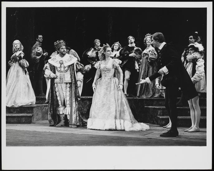 [Roger Hamilton as Claudius and Anne Meacham as Gertrude in "Rosencrantz and Guildenstern Are Dead".]