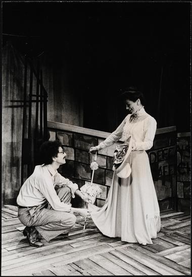 [Peter Kastner as Michael, Tovah Feldshuh as Myriam and Allan Arbus as Morris in "Dreyfus in Rehearsal".]