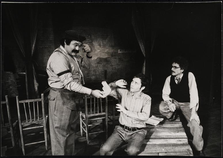 [Harry Davis as Zalman, Michael Pendrey as Yanek and Rex Williams as Bronislaw in "Dreyfus in Rehearsal".]