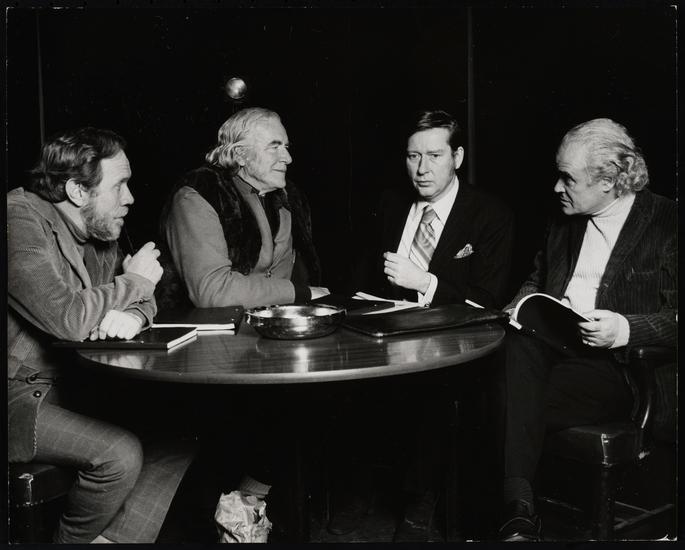 [Will Geer in the title role and Patrick Magee as Daniel Webster in "Scratch".]