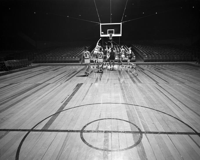 N.Y. Knickerbockers - Dick McGuire [New York Knicks players practicing.]